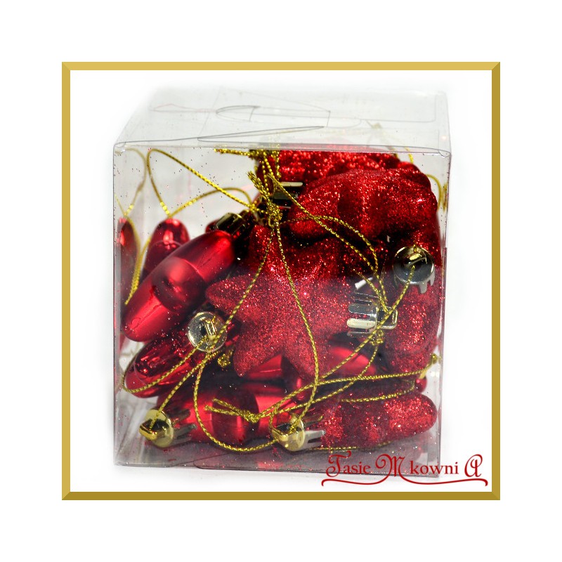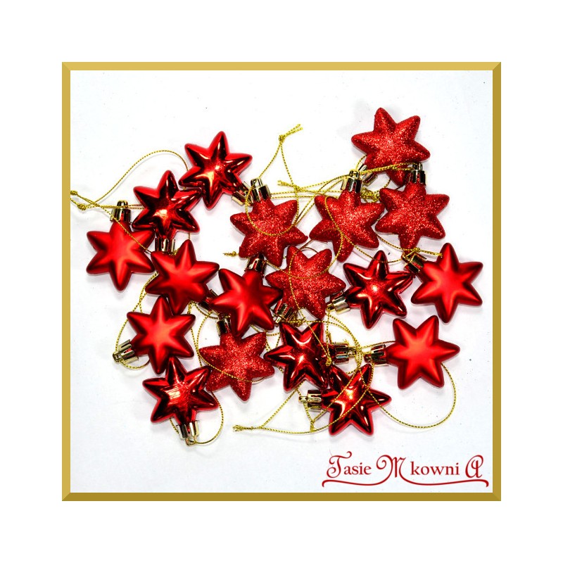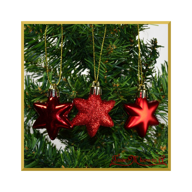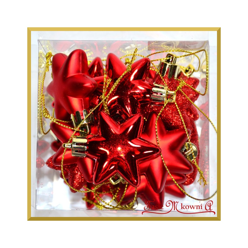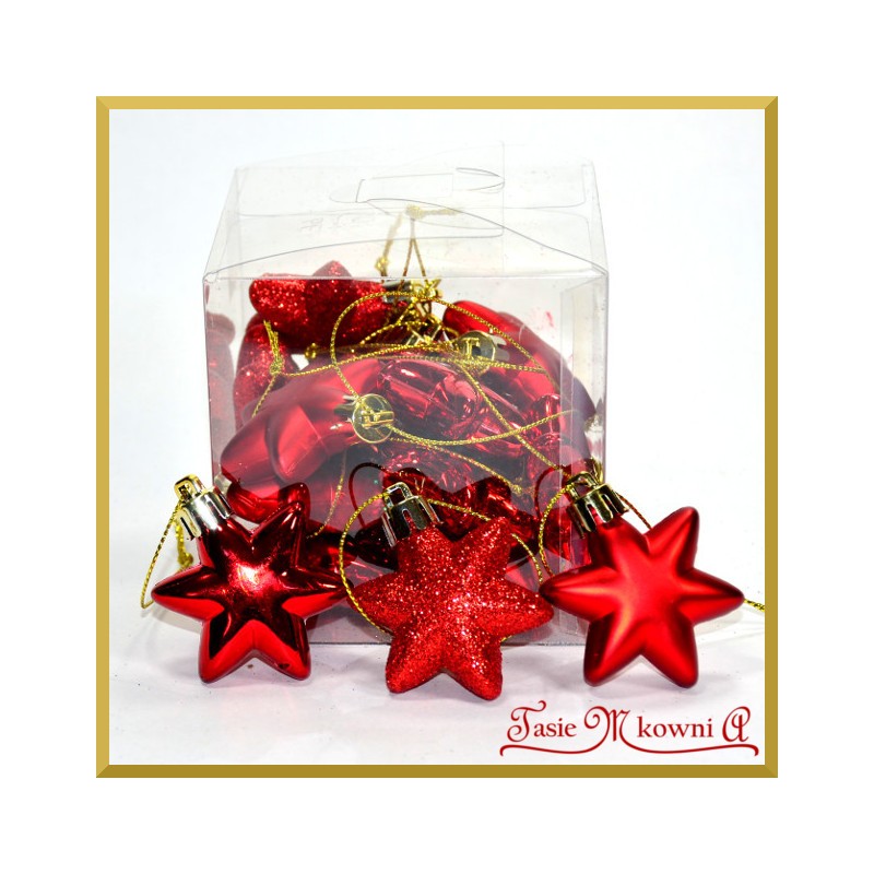 Bombki plastikowe GWIAZDKI CZERWONE 5cm/18szt.