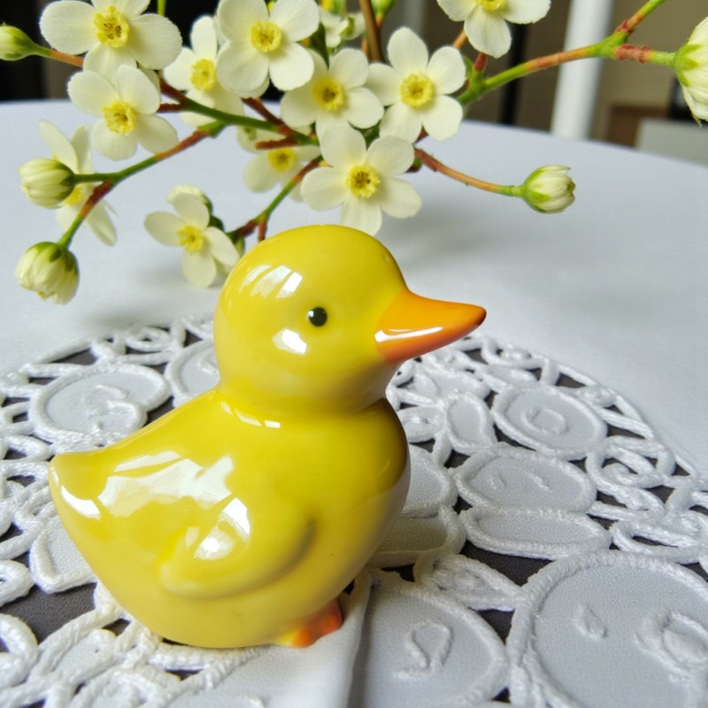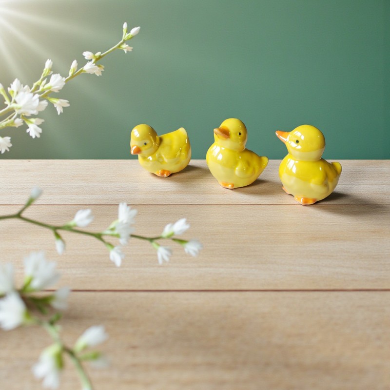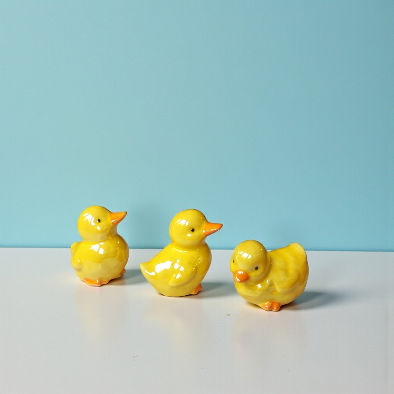 Uroczy zestaw 3 ceramicznych kaczuszek, ręcznie malowanych w żywych, wiosennych kolorach. Idealna dekoracja wielkanocna, która doda uroku świątecznemu stołowi, stroikowi lub wnętrzu.