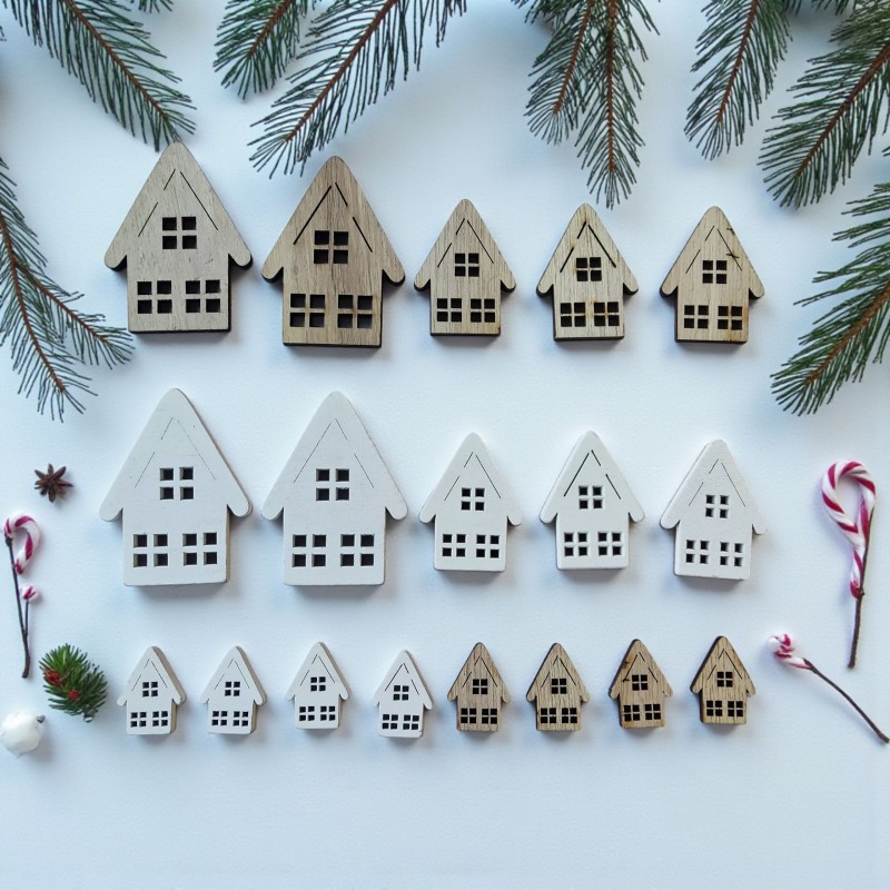 Starannie wykonane ozdoby z drewna mogą posłużyć jako element dekoracji prezentu, kartki z życzeniami na święta. Kształtki precyzyjnie wycięte ze sklejki można zarówno kleić do wybranej powierzchni jak i zawieszać mocując na sznurku czy nitce. Przepięknie prezentują się na dekoracjach sporządzanych na święta, ale i jako zawieszka na choinkę czy do okna.