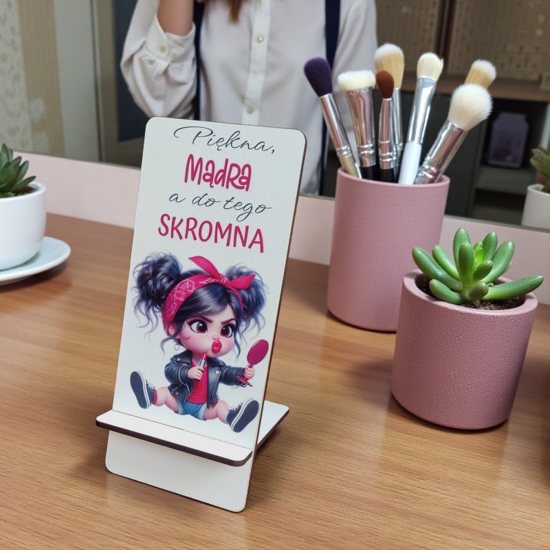 Podstawka na telefon ze sklejki, z nadrukiem uv