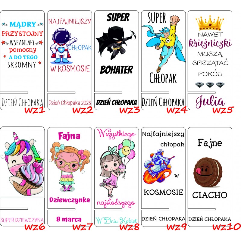 Po zakupie podaj wzór nadruku oraz dane do personalizacji. Numery wzorów widoczne na zdjęciach w galerii.