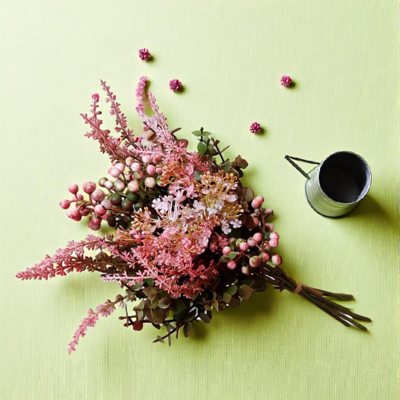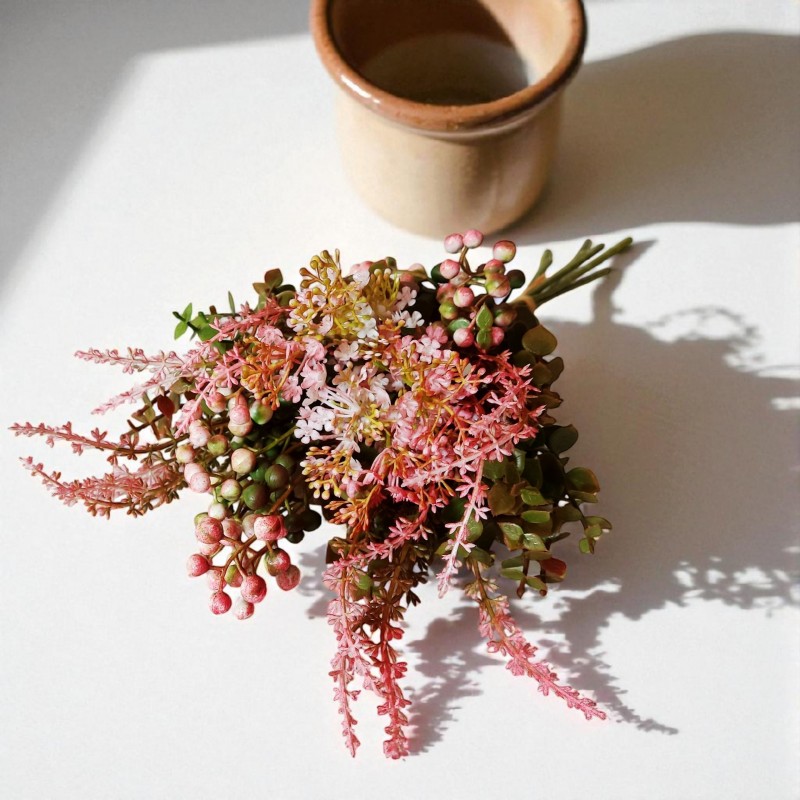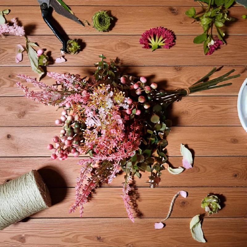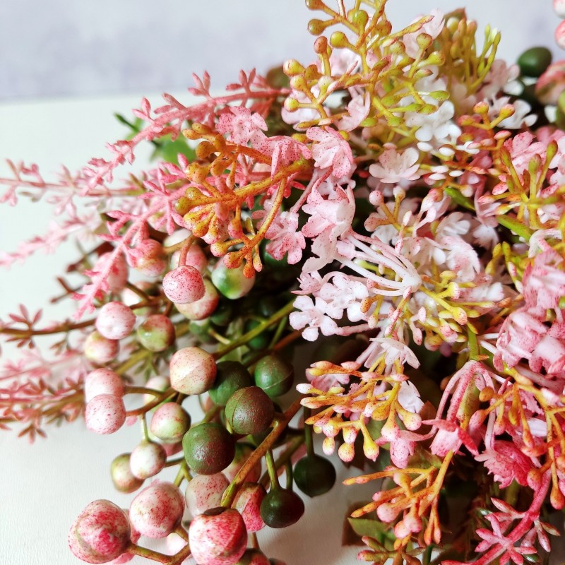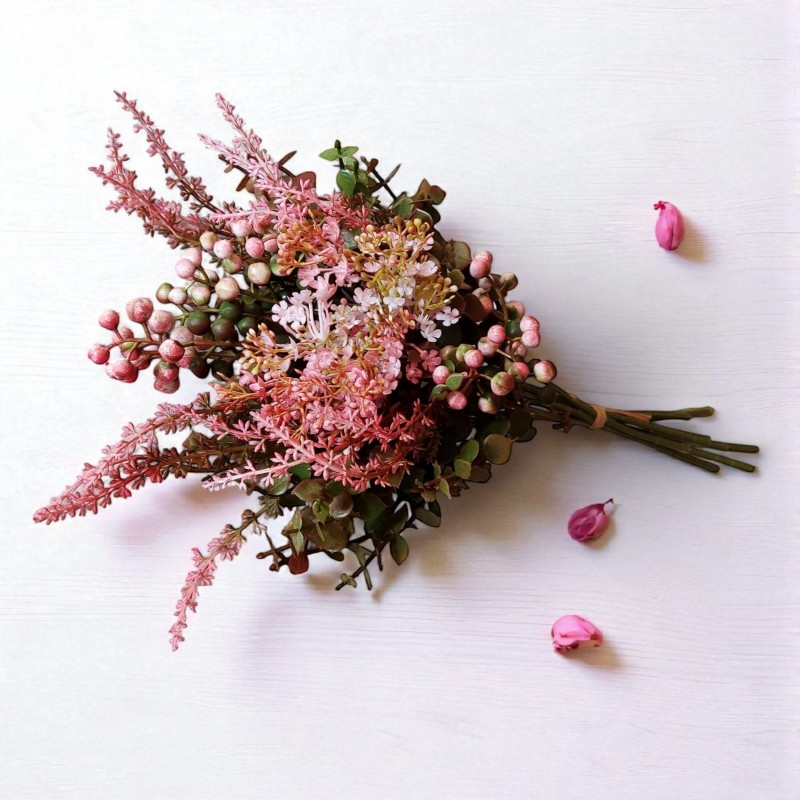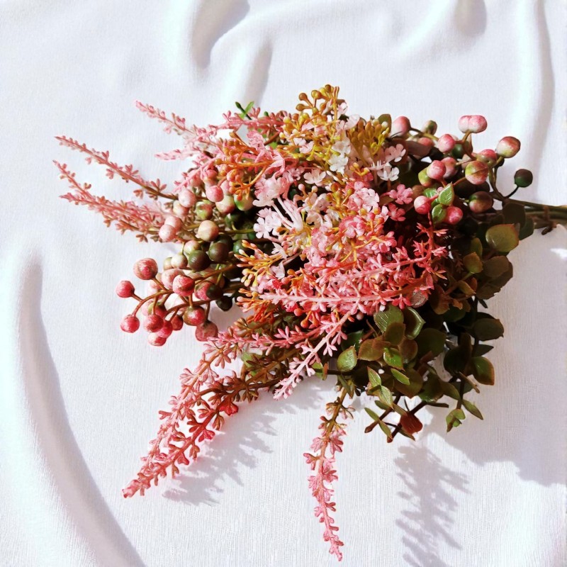 Bukiet jagódki, wrzosy,eukaliptus i kwiatuszki mini - koral - 38cm/8szt