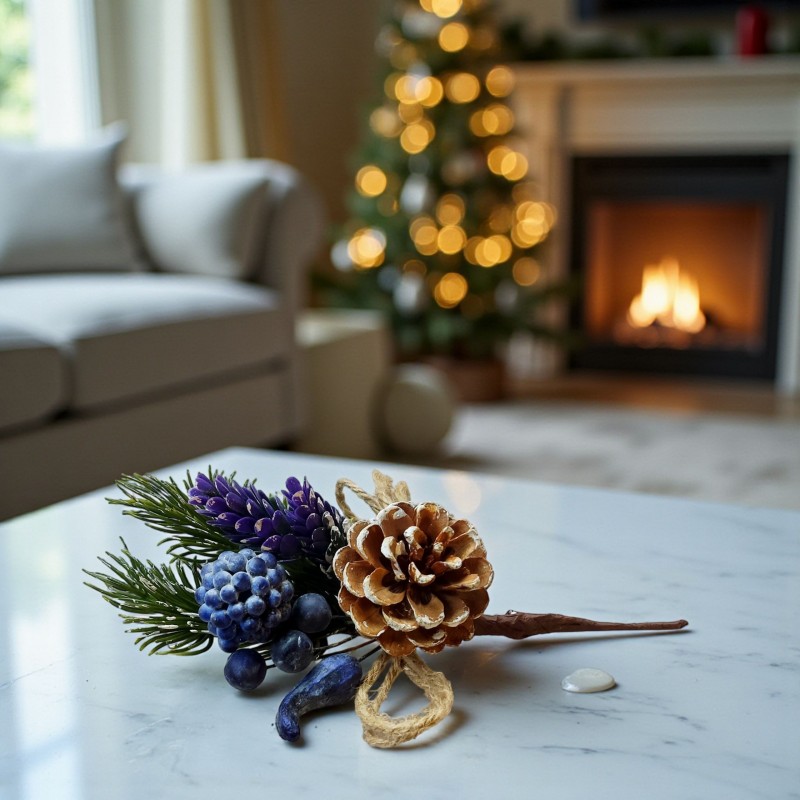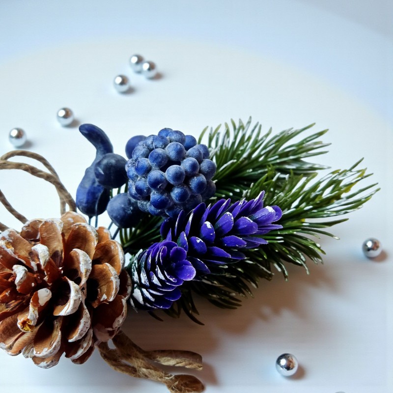 Gałazka jagódki, jeżyna, igliwie, szyszka