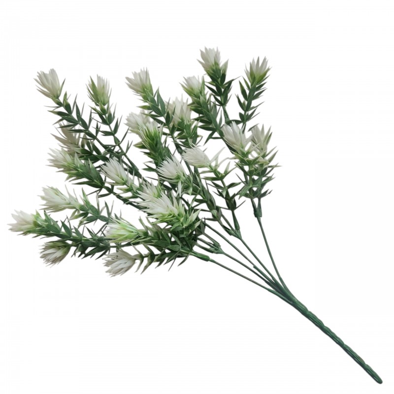 Nowoczesna dekoracja do salonu, biura, wazonu lub kompozycji florystycznej. Dodaj wyjątkowy akcent do swojego wnętrza dzięki tej efektownej trawie ozdobnej ze stylizowanymi ostami! Realistyczne wykonanie sprawia, że ta sztuczna roślina idealnie wpisuje się w styl boho, glamour, loftowy i skandynawski.