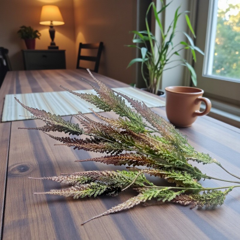 Nowoczesna dekoracja do salonu, biura, wazonu lub kompozycji florystycznej. Dodaj wyjątkowy akcent do swojego wnętrza dzięki tej efektownej gałązce! Realistyczne wykonanie sprawia, że ta sztuczna roślina idealnie wpisuje się w styl boho, glamour, loftowy i skandynawski.