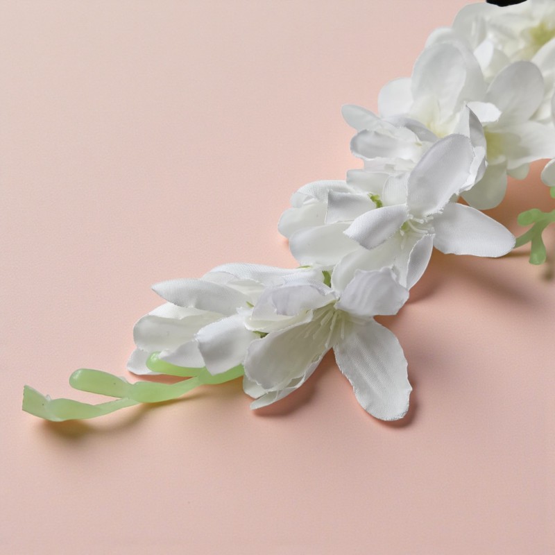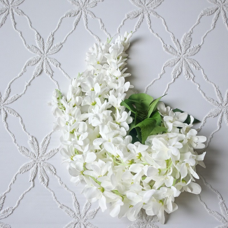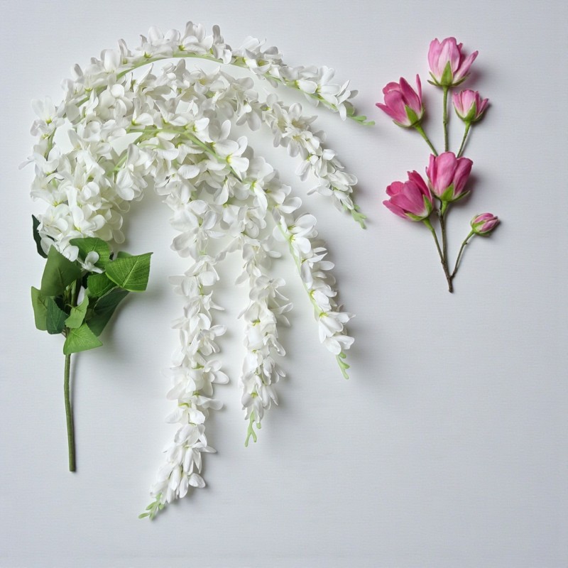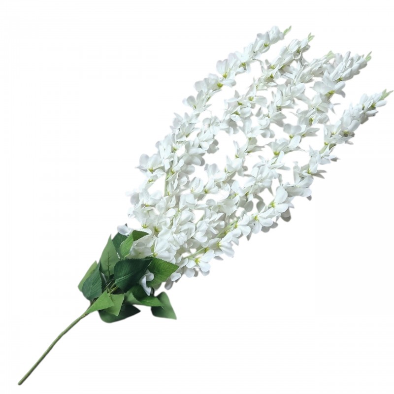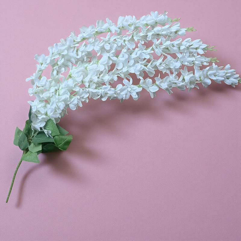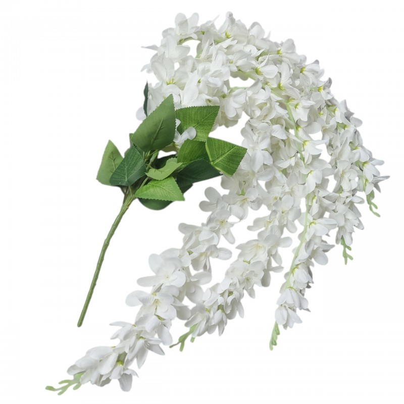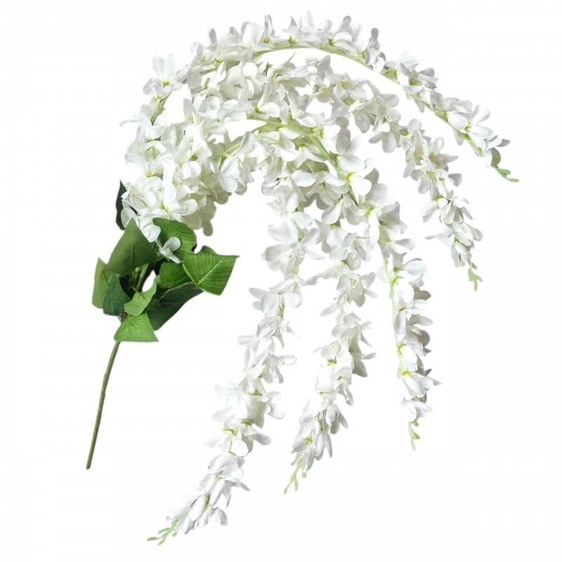 Dodaj wnętrzu wyjątkowego uroku dzięki sztucznej wisterii (glicynii) w kolorze białym. To efektowne pnącze o długości 90 cm zachwyca realistycznym wyglądem i delikatnymi, zwisającymi kwiatostanami inspirowanymi naturalną Wisteria. Idealne do dekoracji wnętrz, balkonów, tarasów, sal weselnych czy witryn sklepowych.