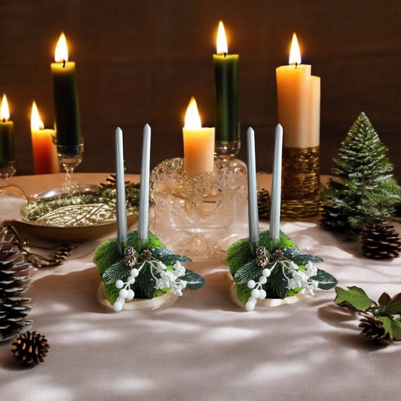 Piękne, duże, podstawki ozdobne na świece doskonale znajdują zastosowanie przy sporządzaniu stroików, dekoracji na stół. Uświetni samodzielnie wykonywane dekoracje zwłaszcza w okresie bożonarodzeniowym i nietylko. Można je wykorzystać do sporządzenia wieńca adwentowego. Na spodzie posiadają pik co umożliwia i ułatwia ich precyzyjne umocowanie.