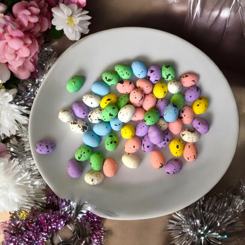 Śliczne, malowane jajeczka, imitujące jajeczko przepiórcze, doskonałe do bukietu stucznych jak i świeżych kwiatów, koszyczka wielkanocnego a także jako dekoracja stołu. Pokryte w całości farbą pozwalają stwarzyć niepowtarzalną dekorację do domowego wnętrza. Można je użyć jako wypełnienie do wazonu, ozdobę kartki okolicznościowej, pięknie prezentować się będzie na wianuszku.