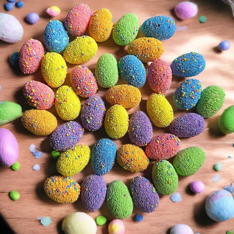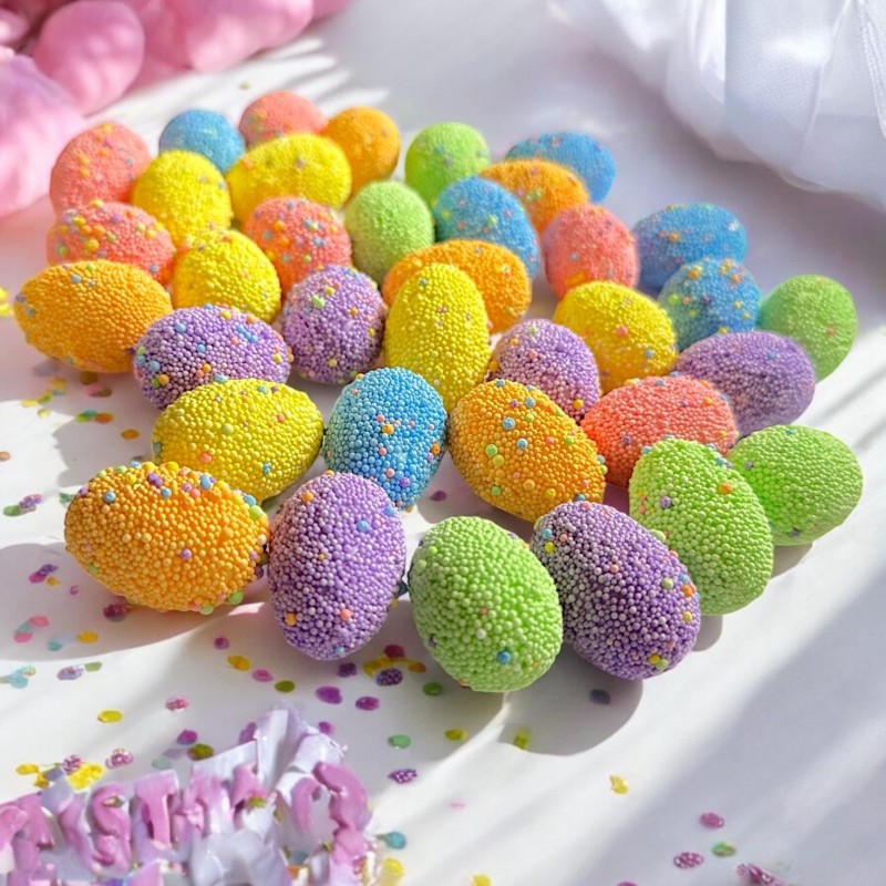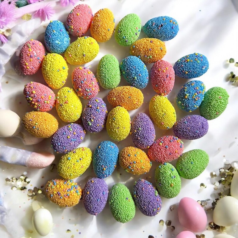 Śliczne, malowane jajeczka, imitujące jajeczko przepiórcze, doskonałe do bukietu stucznych jak i świeżych kwiatów, koszyczka wielkanocnego a także jako dekoracja stołu. Pokryte w całości farbą pozwalają stwarzyć niepowtarzalną dekorację do domowego wnętrza. Można je użyć jako wypełnienie do wazonu, ozdobę kartki okolicznościowej, pięknie prezentować się będzie na wianuszku.