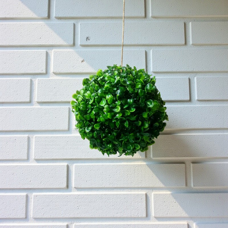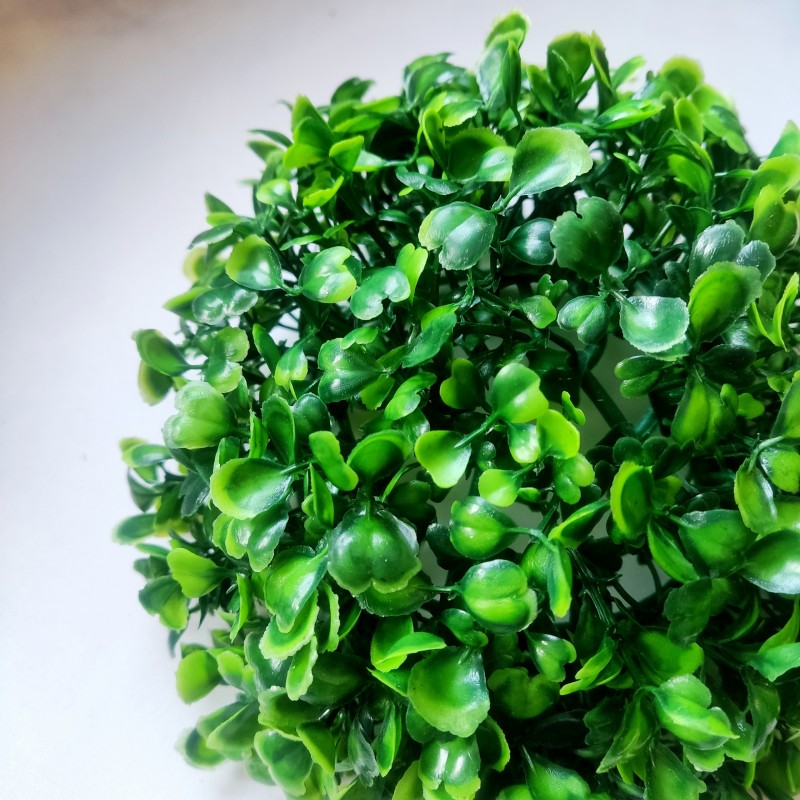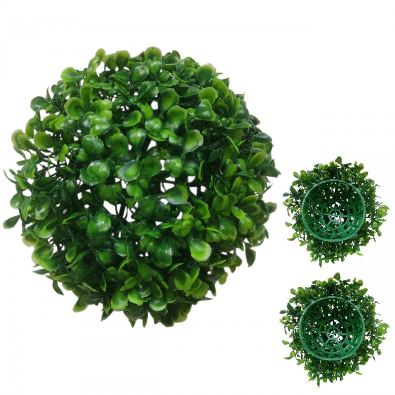 Śliczna, wykonana z doskonałej jakości materiału - kula z liści bukszpanu, sprawdzi się przy dekorowaniu zwłaszcza domowego wnętrza podczas Świąt Wielkanocnych. Doskonale nadaje sie do zdobienia sztucznymi kwiatami, mini pisankami. Kula składa się z dwóch połówek, które po złączeniu tworzą całość, ale możesz je wykorzystać każdą z osobna jak np baza do stroika czy Świątecznego świecznika.