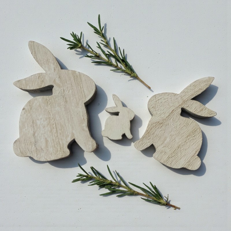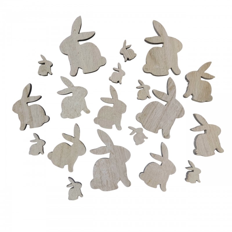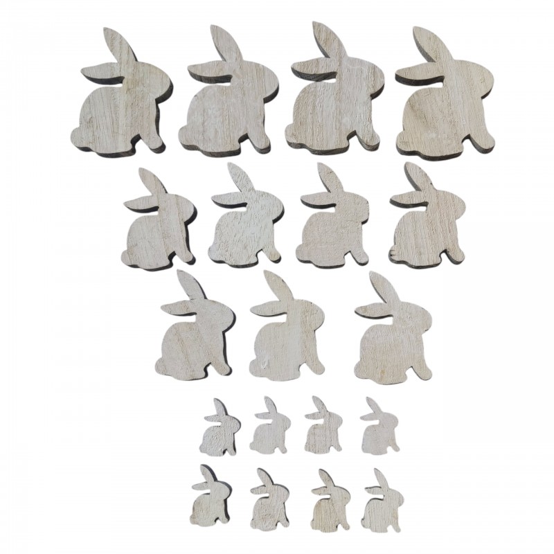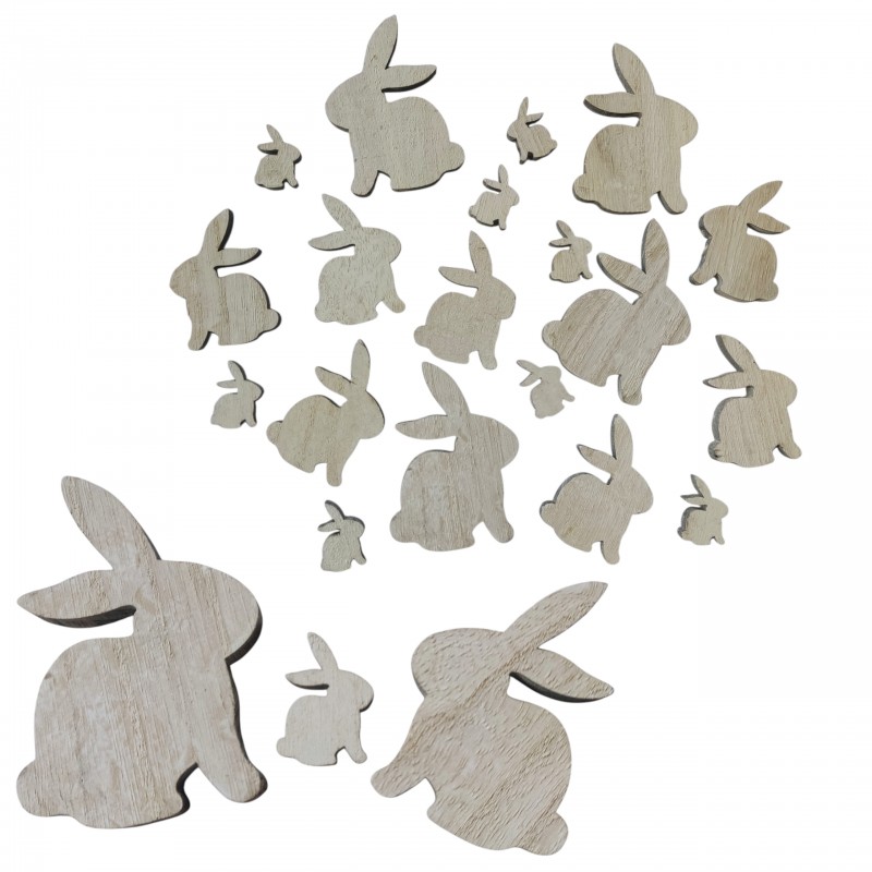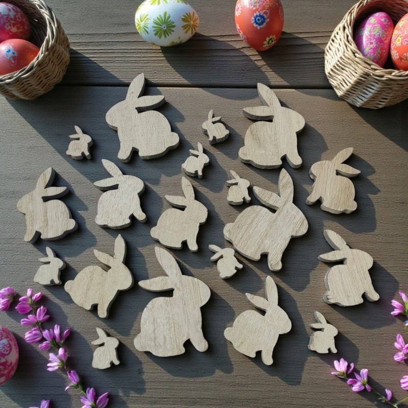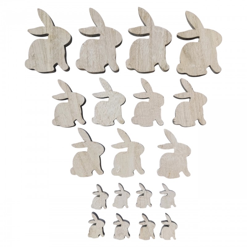 Urocze, małe dekoracje drewniane w kształcie zajączków to idealny dodatek do wiosennych i wielkanocnych aranżacji. Zestaw zawiera 18 sztuk zajączków w miksie rozmiarów, co pozwala na tworzenie ciekawych i zróżnicowanych kompozycji. Drewno nadaje dekoracjom ciepły, rustykalny charakter i doskonale wpisuje się w styl skandynawski, boho oraz eko.