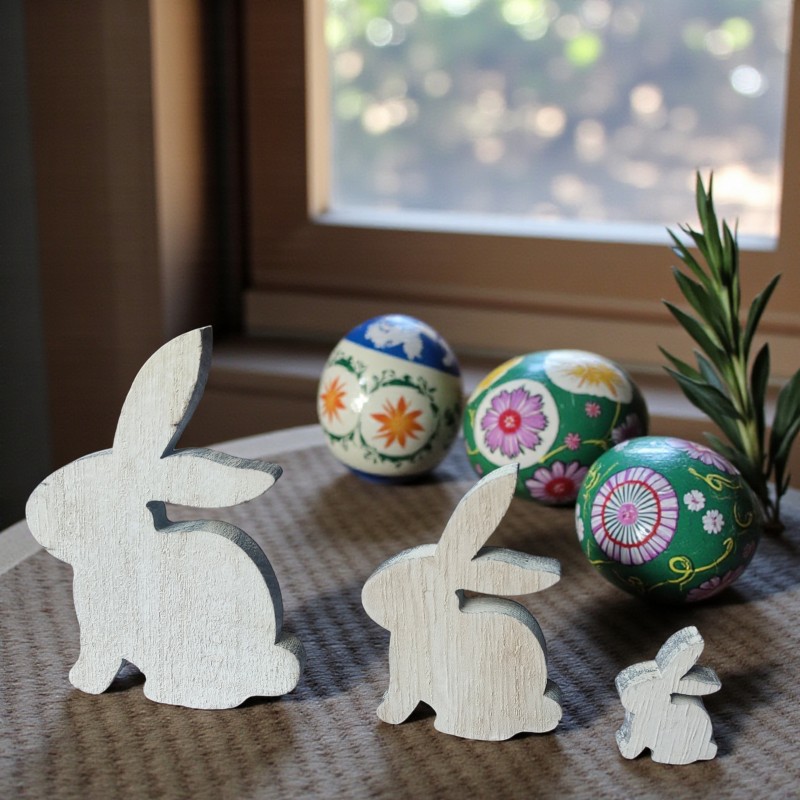 Zajączki świetnie sprawdzą się jako ozdoba stołu, stroików, koszyczków wielkanocnych, wieńców, dekoracji DIY czy opakowań prezentowych. Mogą być używane zarówno w domu, jak i w przestrzeniach komercyjnych – sklepach, restauracjach czy kawiarniach.
