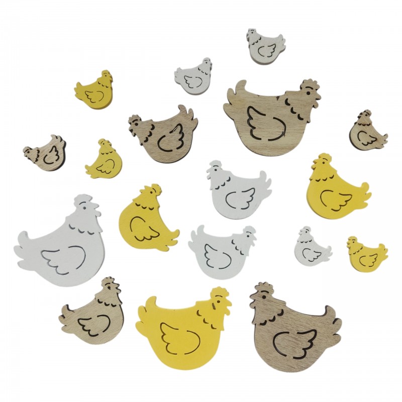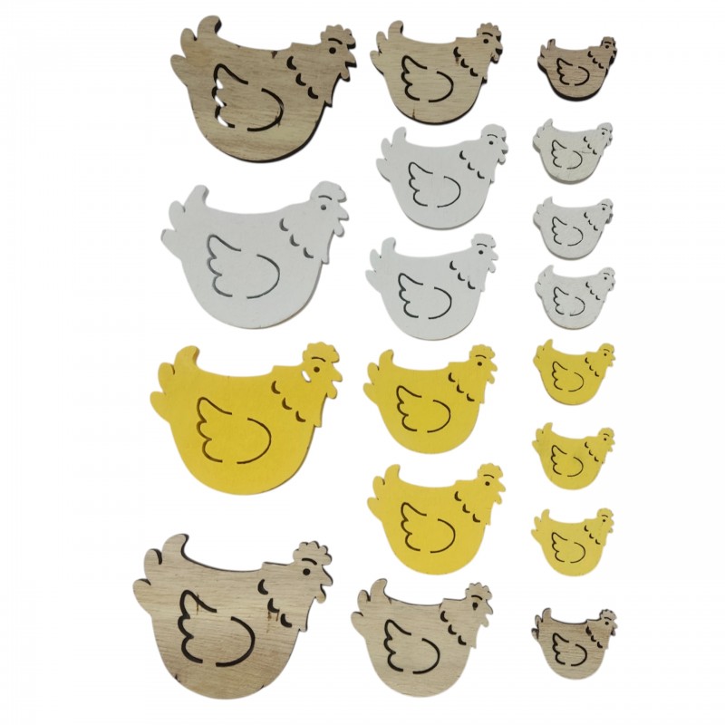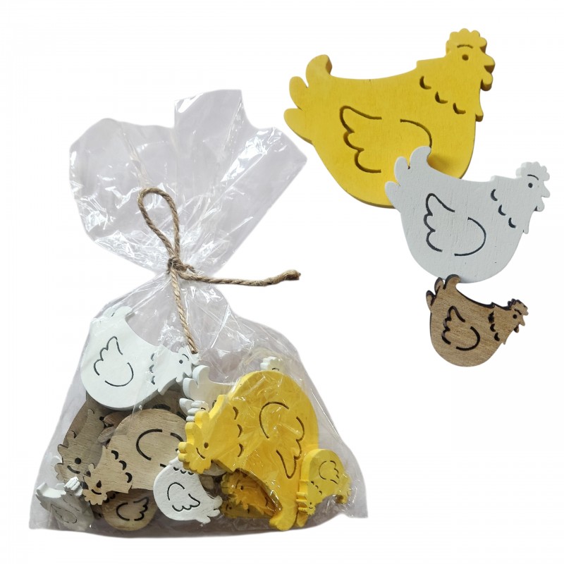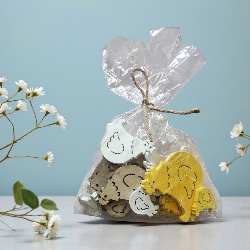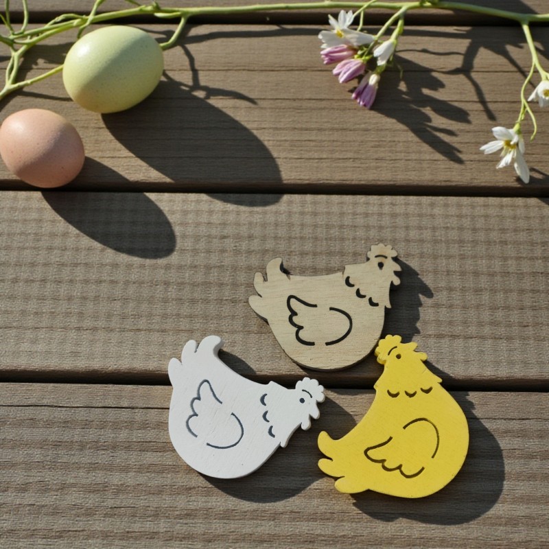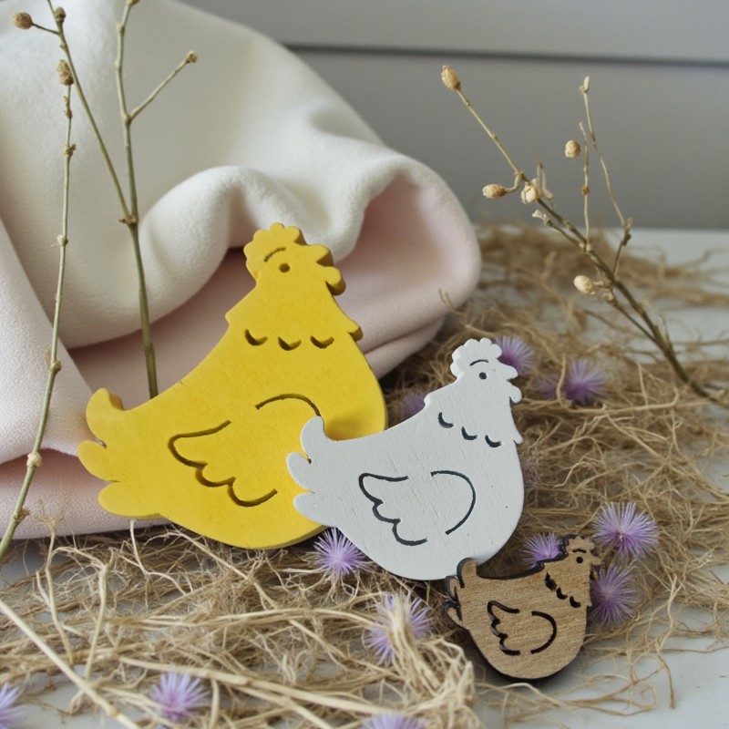 Naturalne, drewniane dekoracje w kształcie kurek to doskonały element wiosennych i wielkanocnych aranżacji. Zestaw zawiera 18 sztuk w miksie rozmiarów, dzięki czemu dekoracje prezentują się lekko i naturalnie w każdej kompozycji. Prosty, rustykalny design sprawia, że kury idealnie pasują do stylu eko, boho oraz skandynawskiego.