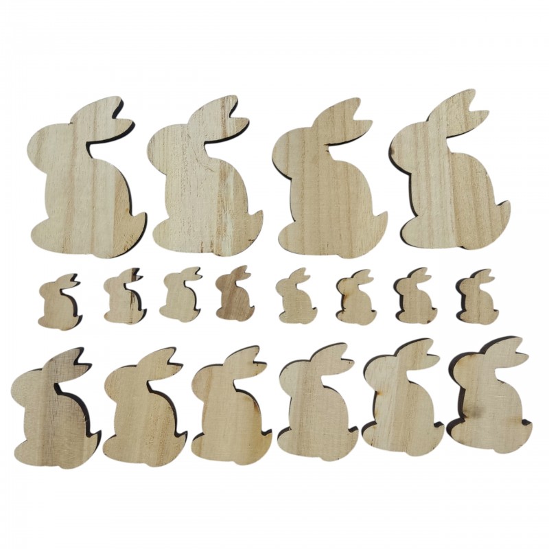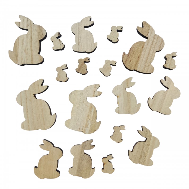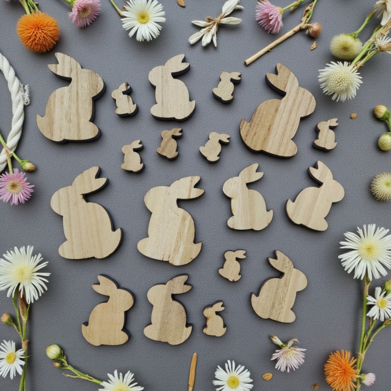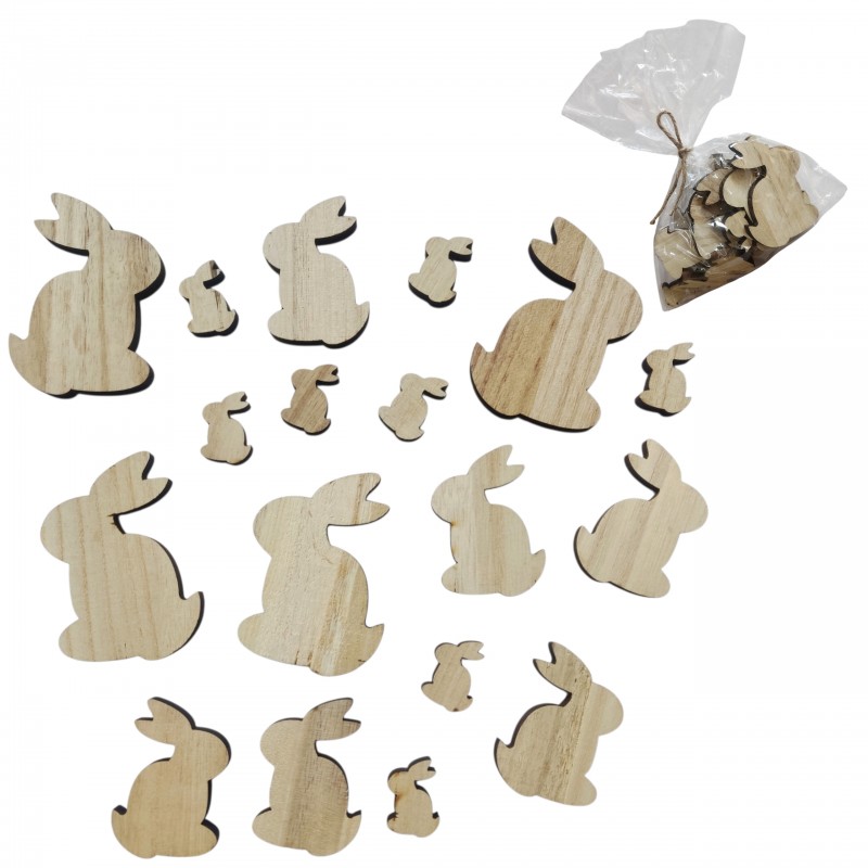 Urocze, małe dekoracje drewniane w kształcie zajączków to idealny dodatek do wiosennych i wielkanocnych aranżacji. Zestaw zawiera 18 sztuk zajączków w miksie rozmiarów, co pozwala na tworzenie ciekawych i zróżnicowanych kompozycji. Drewno nadaje dekoracjom ciepły, rustykalny charakter i doskonale wpisuje się w styl skandynawski, boho oraz eko.