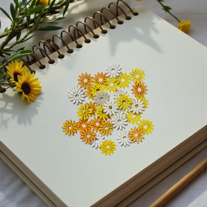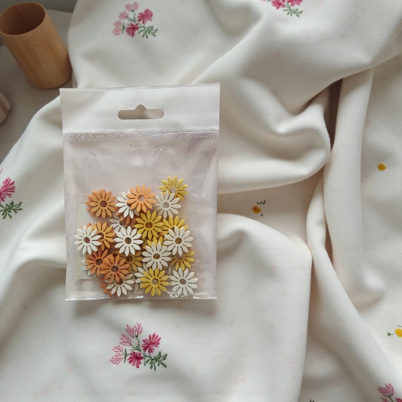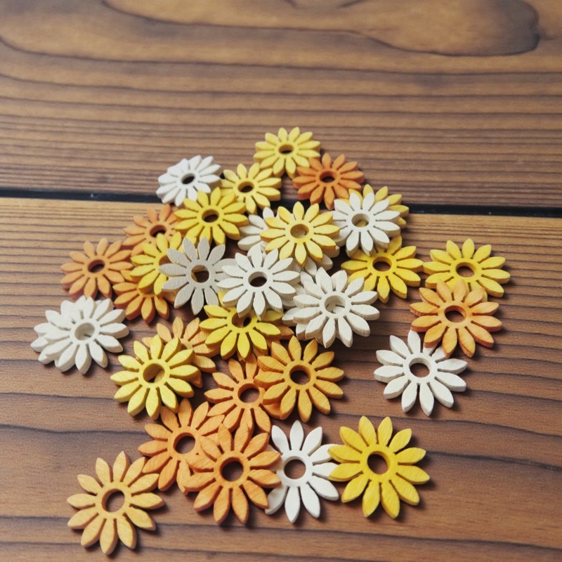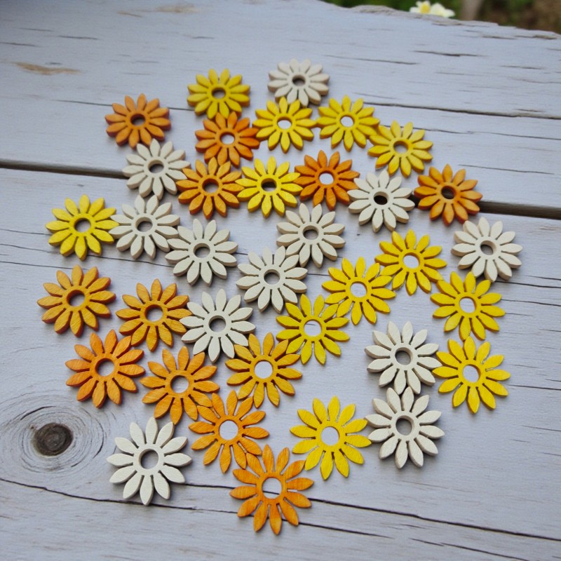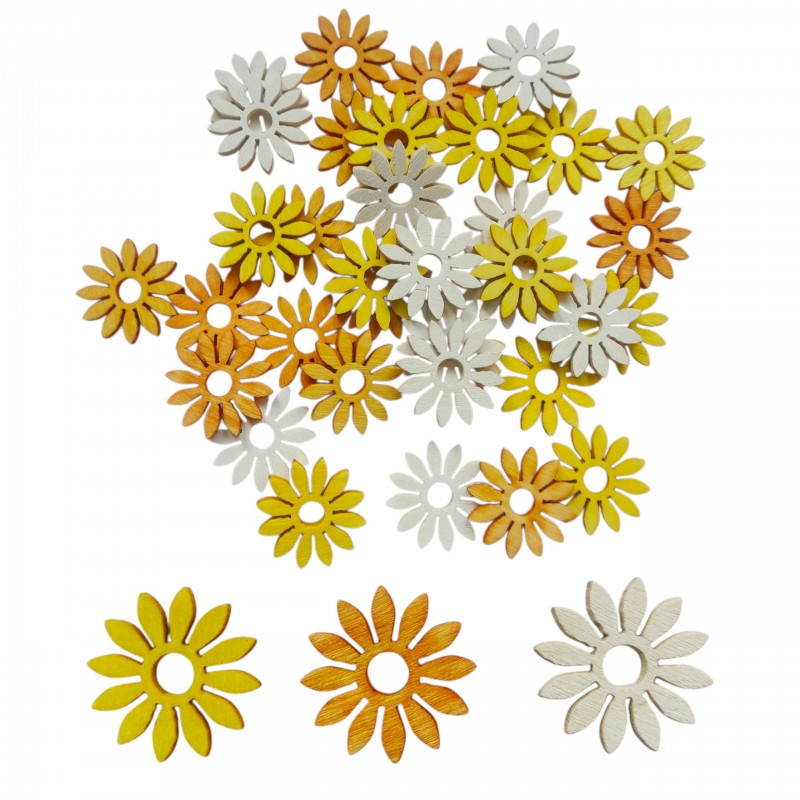 Opakowanie zawiera: 36zt kwiatuszków w miksie kolorów: biały, żółty i pomarańczowy
