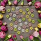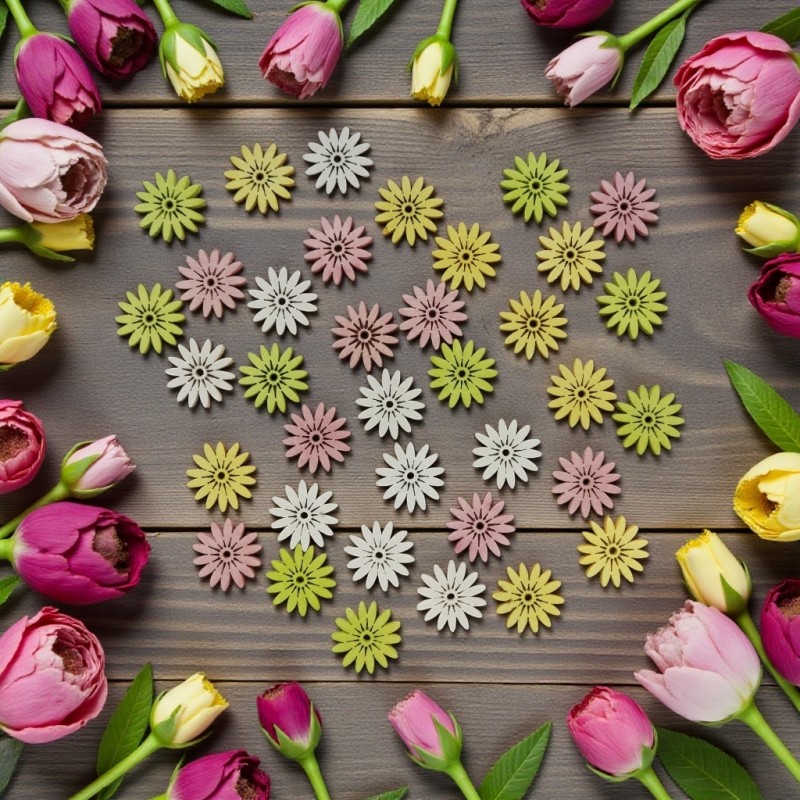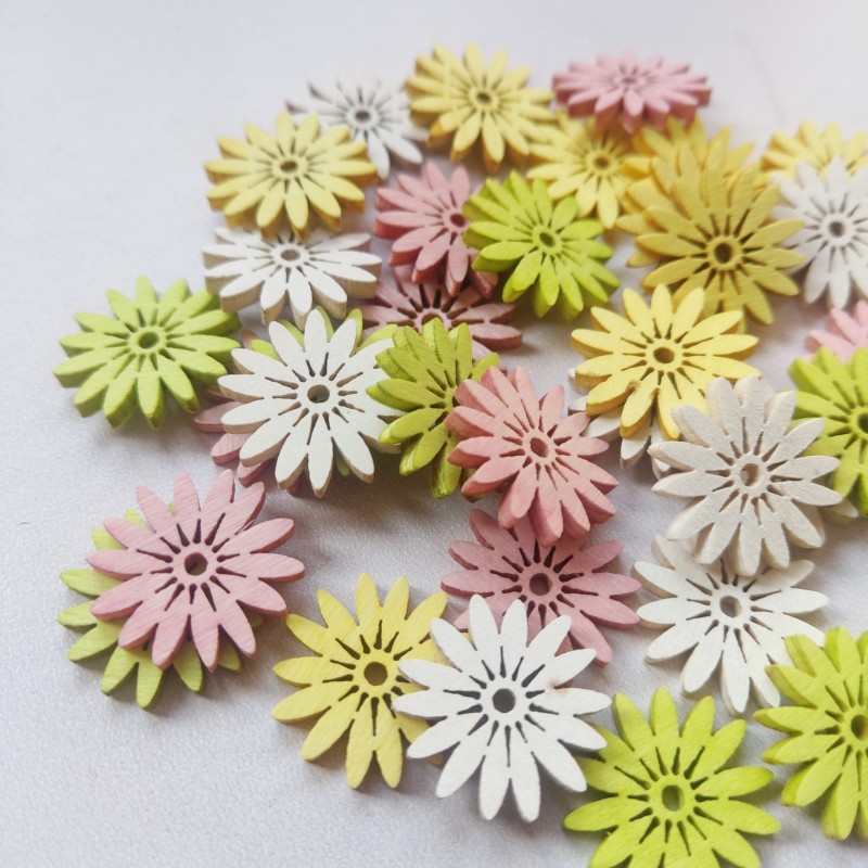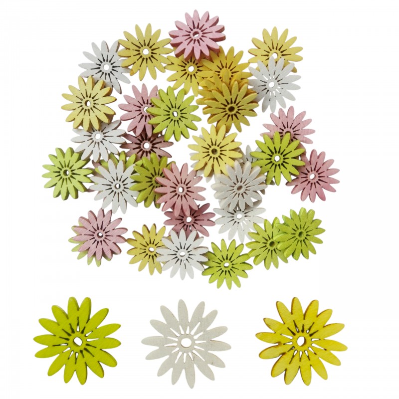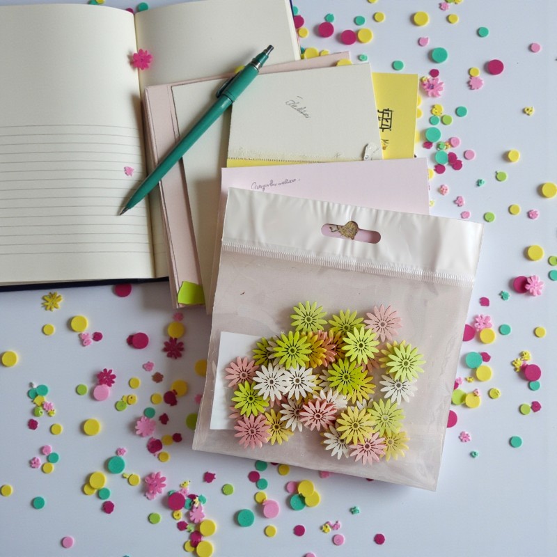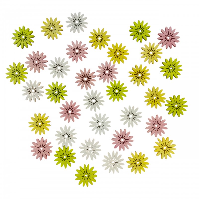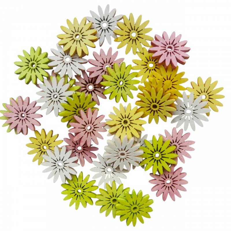 Opakowanie zawiera: 36zt kwiatuszków w miksie kolorów: biały, żółty, róż i limonka