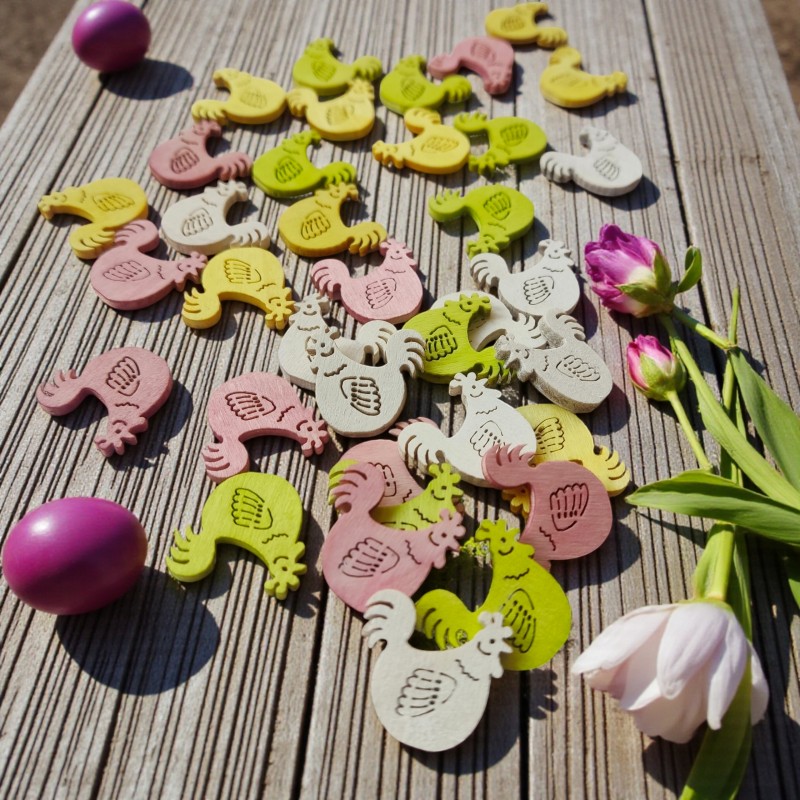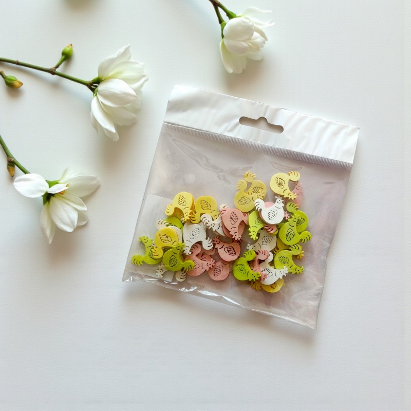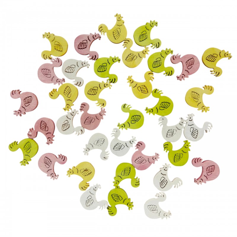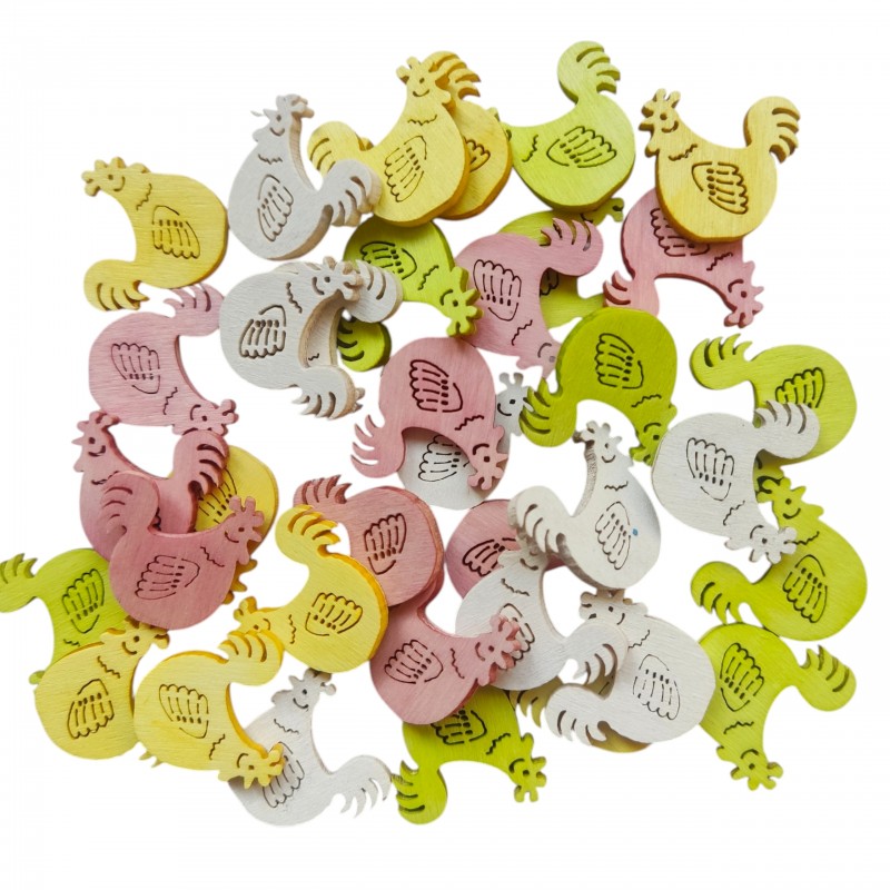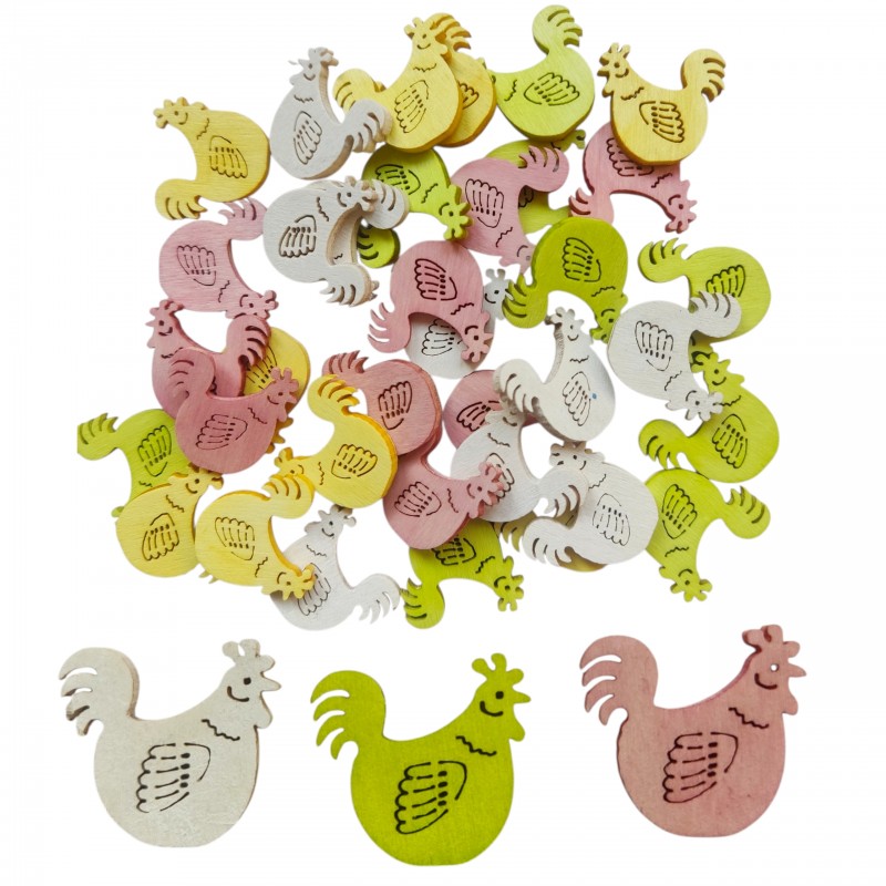 Opakowanie zawiera: 36zt kur w miksie kolorów: biały, żółty, róż i limonka